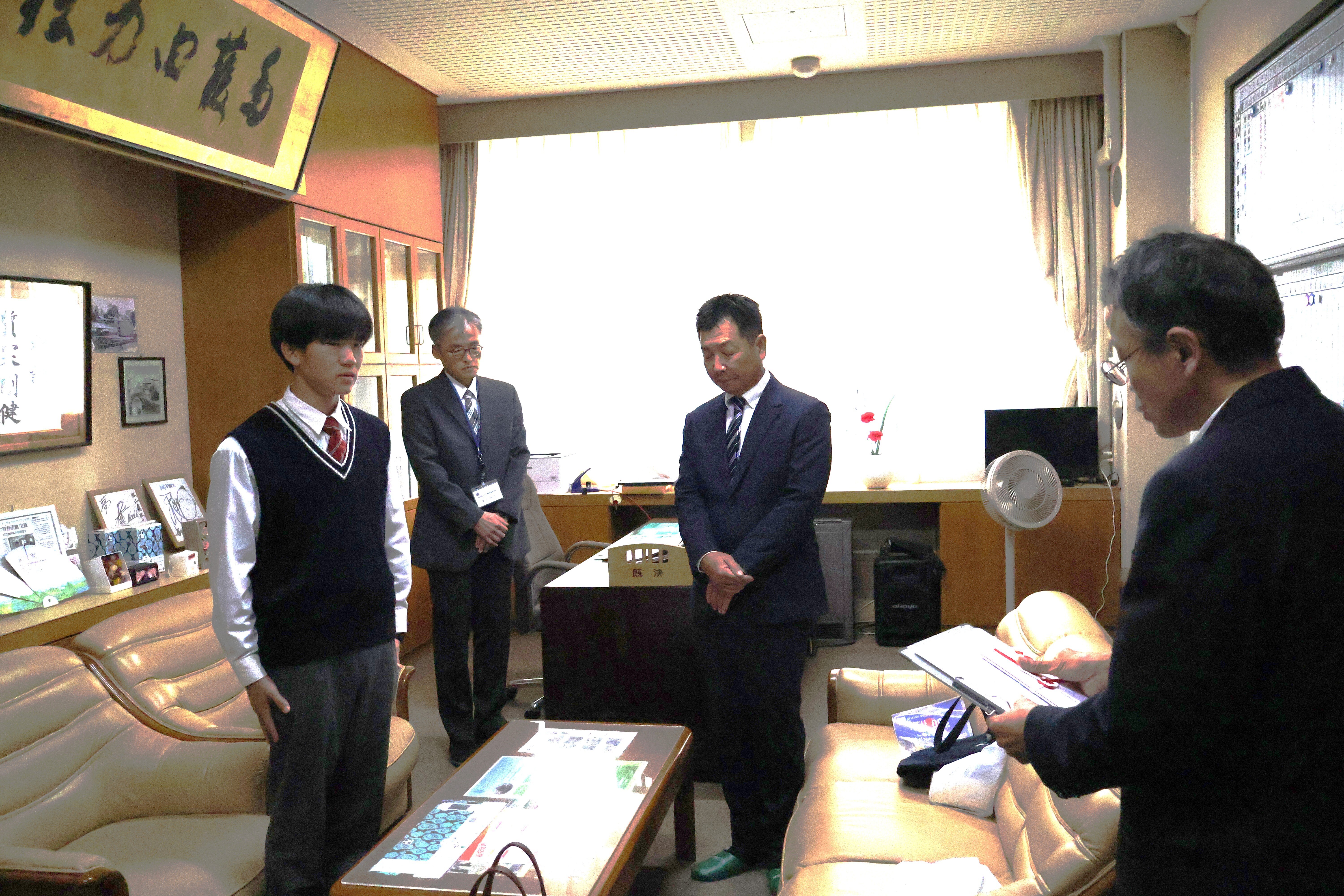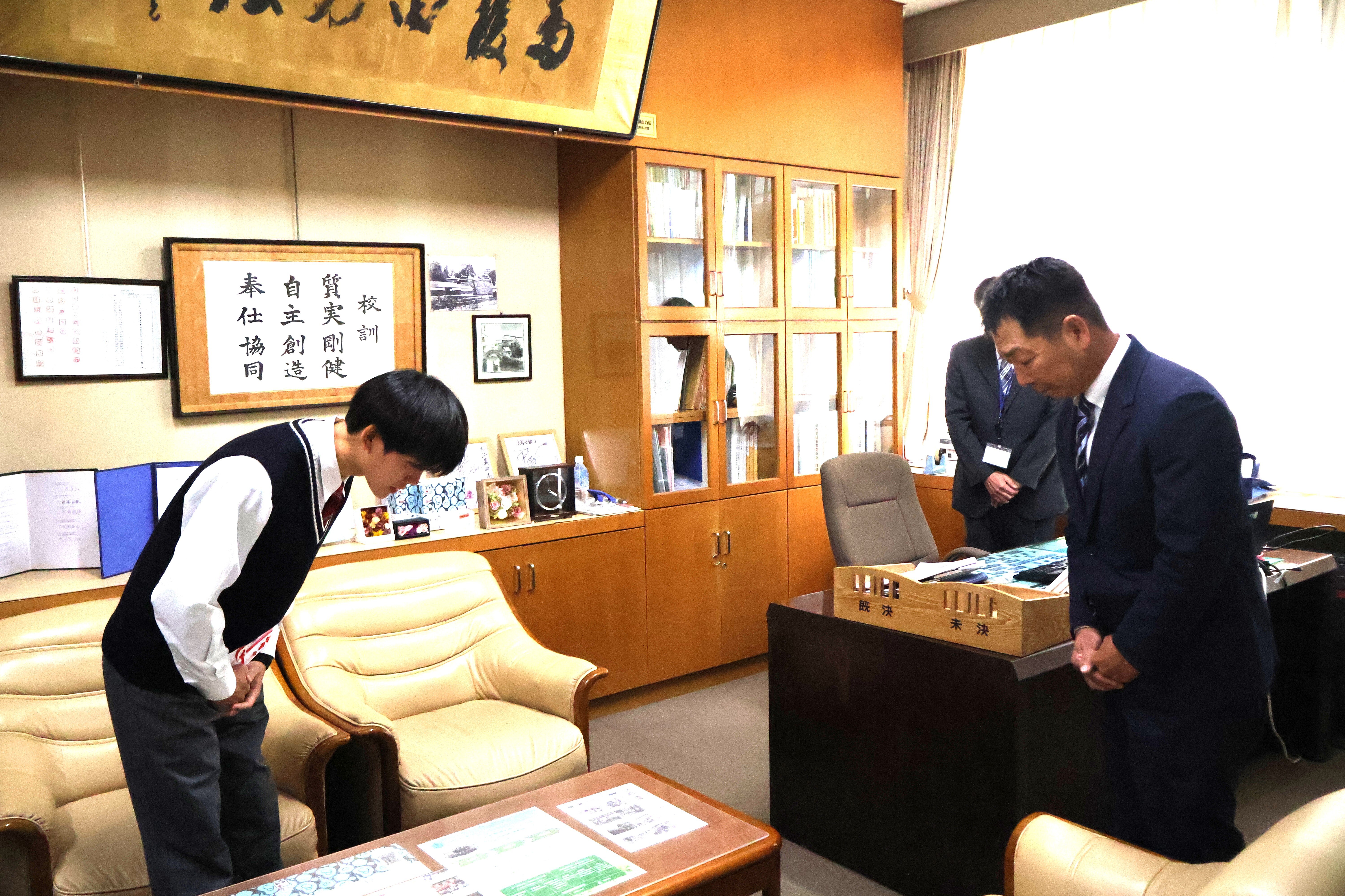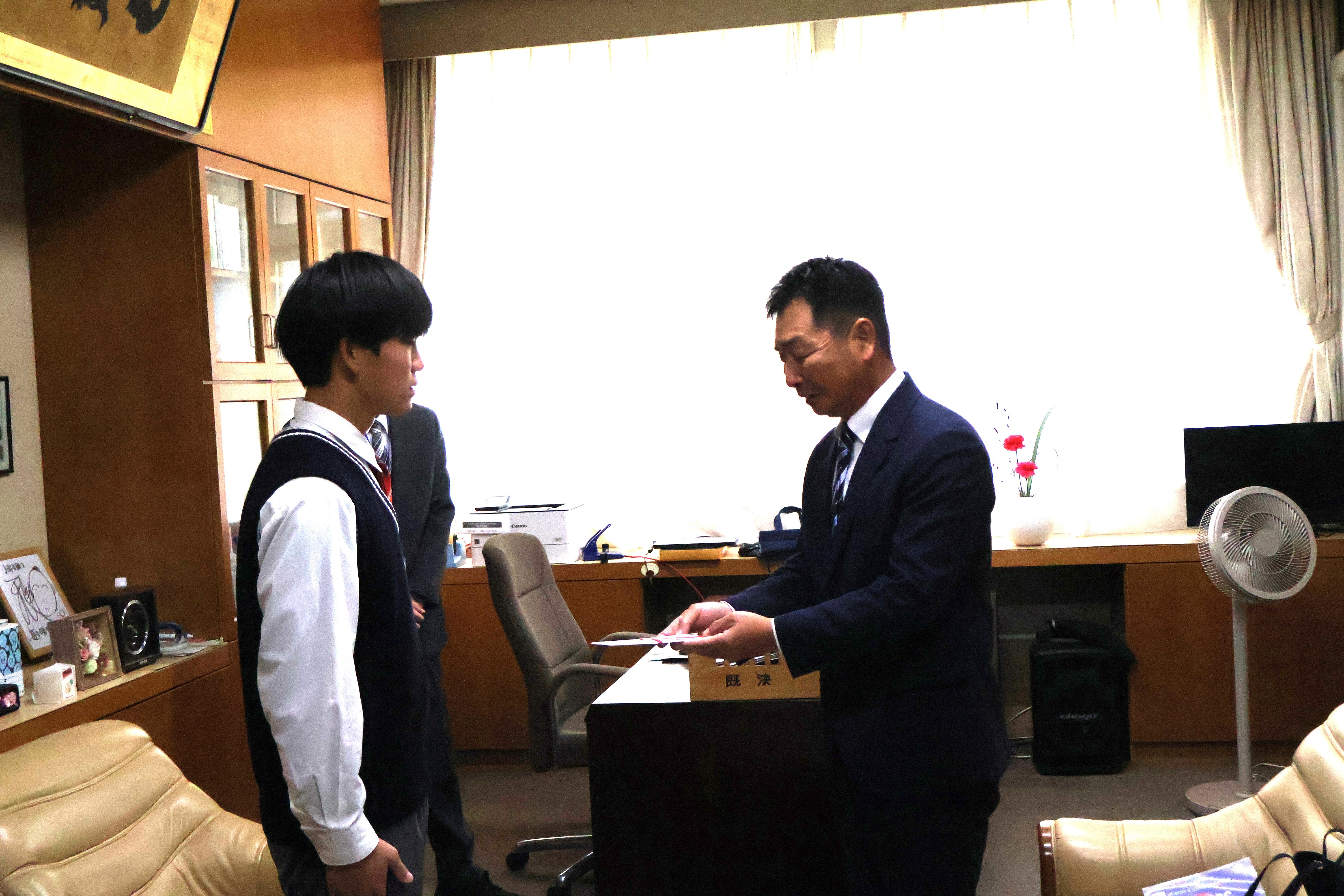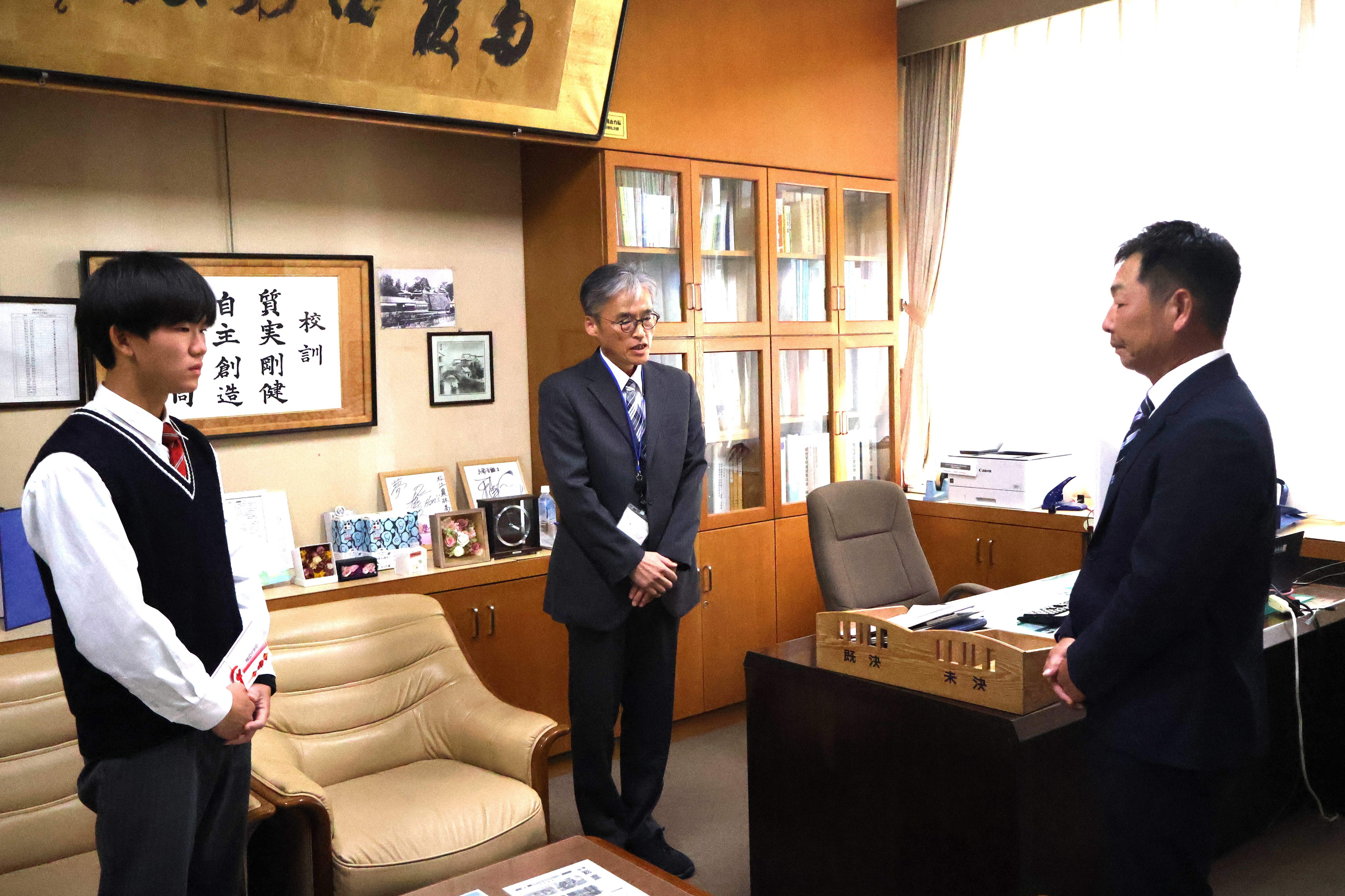IBSAロービジョンフットサル世界選手権2025に出場する藤原昊世さんへ島根県高等学校PTA連合会より激励費をいただきました。激励費贈呈の後、藤原さんより力強い挨拶がありました。PTA連合会様、ありがとうございました。