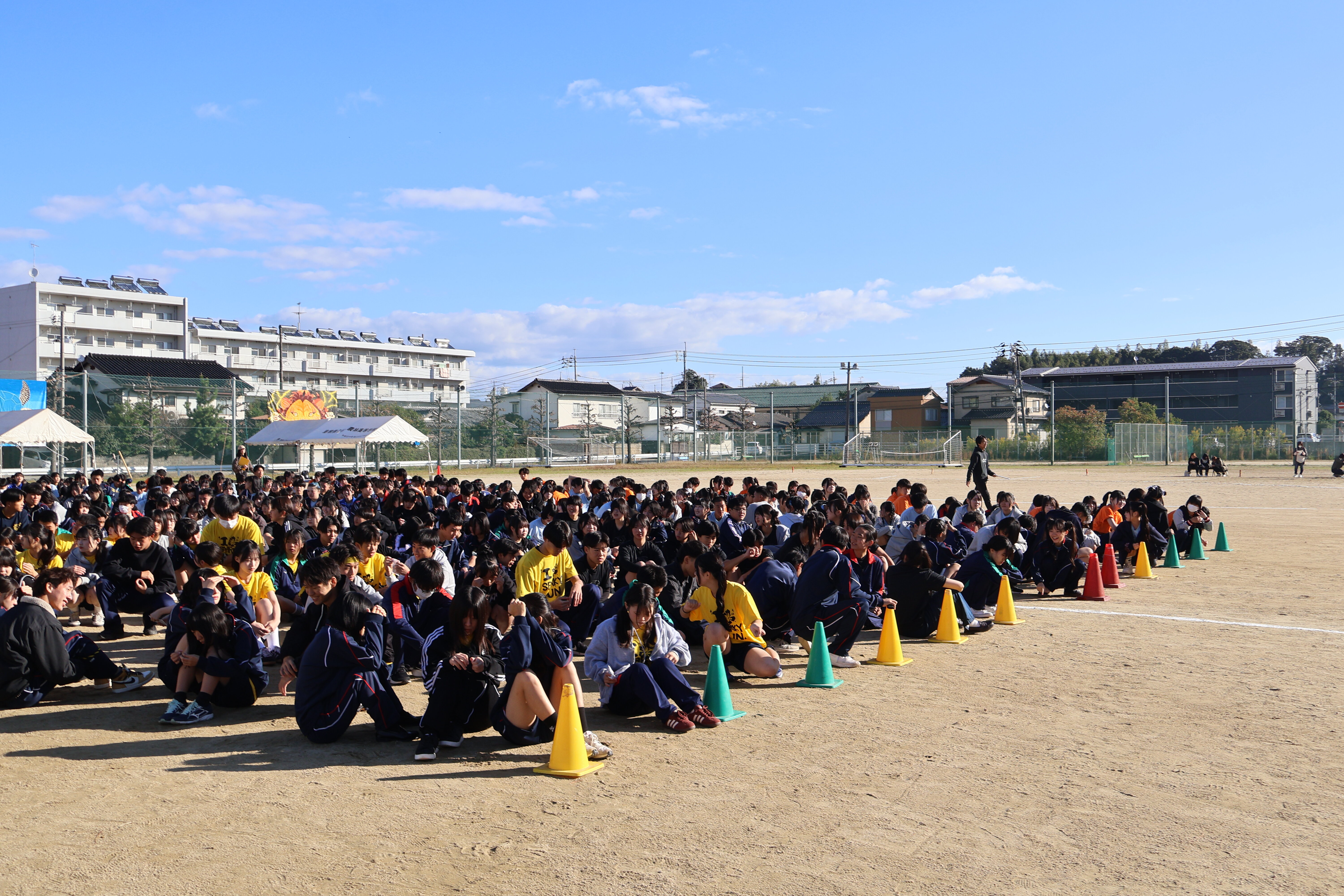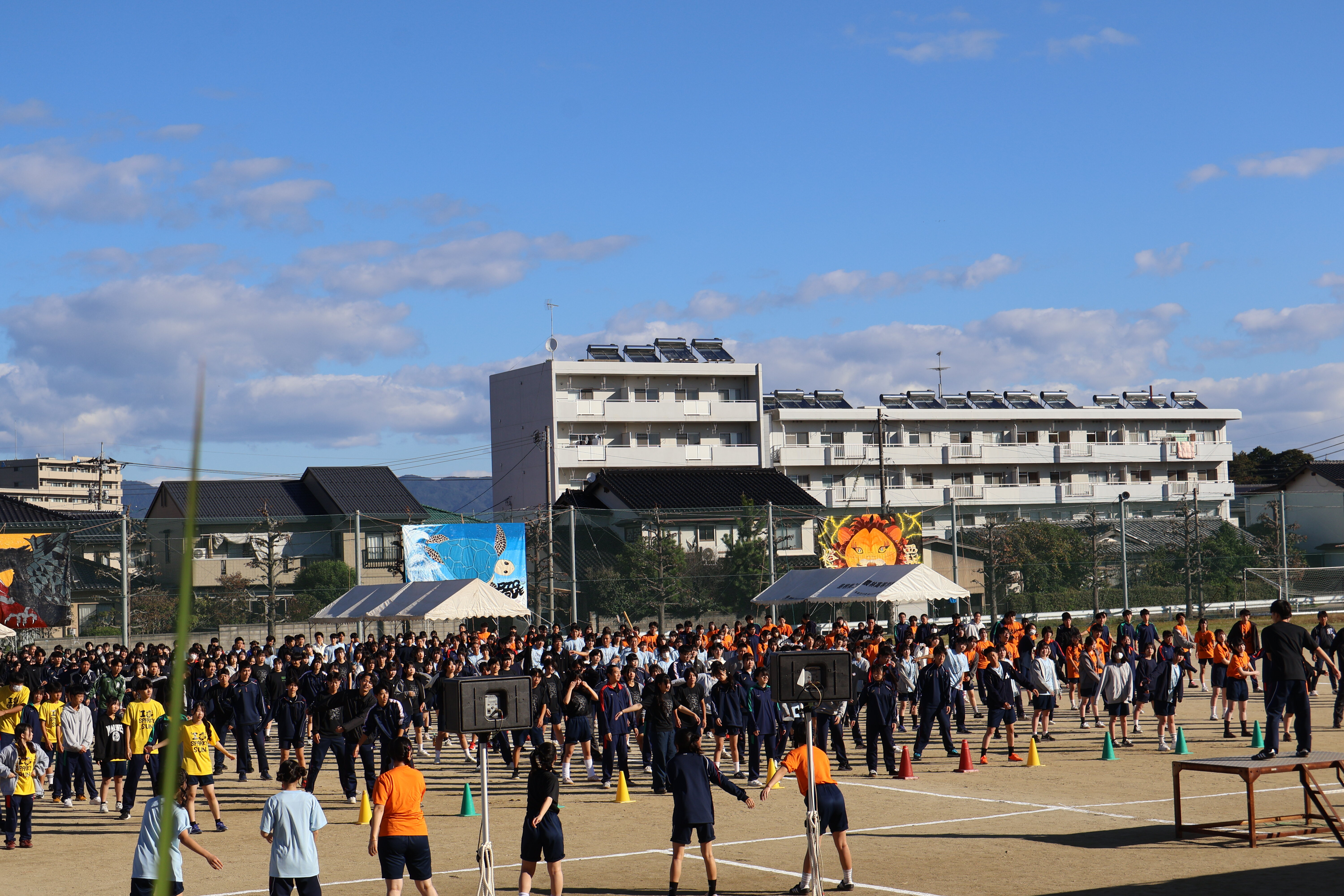 イベント カテゴリ: 【クラウドファンディング】 いじめ防止基本方針 お知らせ イベント グランドデザイン 中学生の皆様へ 収穫祭 各種支援金・大阪学生会館 各種証明書、他 図書館 学校経営方針 授業風景 特別支援教育 行事予定 進路指導部 部活動 2025. 11.01 体育祭その1 10月29日(水)少し肌寒い秋空のもと体育祭を開催しました。種目ごとにごらんください。 <開会式> 生徒会長挨拶 校長挨拶 <デカパンリレー(1年生学年種目)> 前に戻る