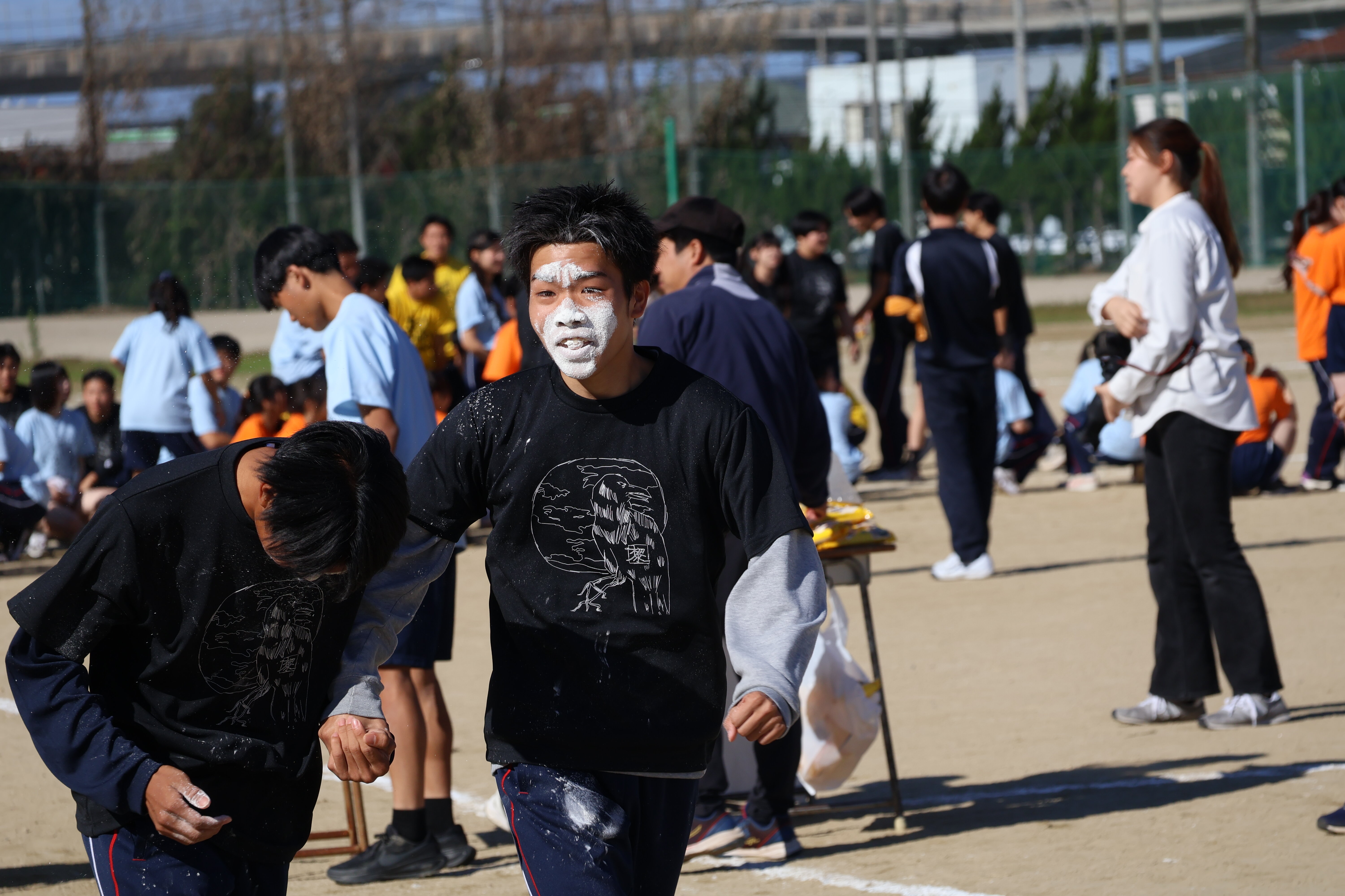 イベント カテゴリ: 【クラウドファンディング】 いじめ防止基本方針 お知らせ イベント グランドデザイン 中学生の皆様へ 収穫祭 各種支援金・大阪学生会館 各種証明書、他 図書館 学校経営方針 授業風景 特別支援教育 行事予定 進路指導部 部活動 2025. 11.01 体育祭その2(ムカデ競走、障害物リレー) 体育祭その2 <ムカデ競走(2年生学年種目)> <障害物リレー(3年生学年種目)> 前に戻る
