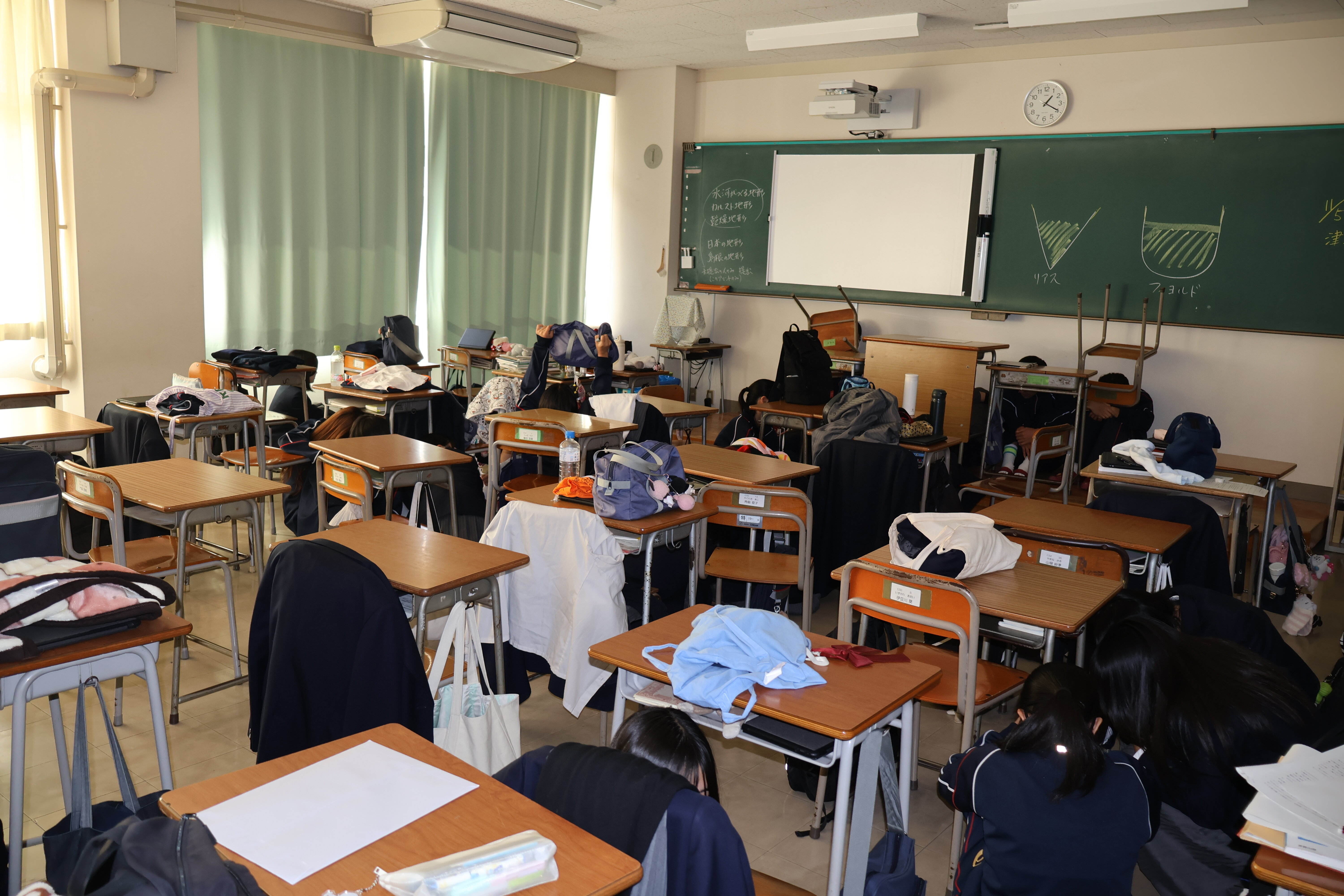 クラスでの避難の様子
