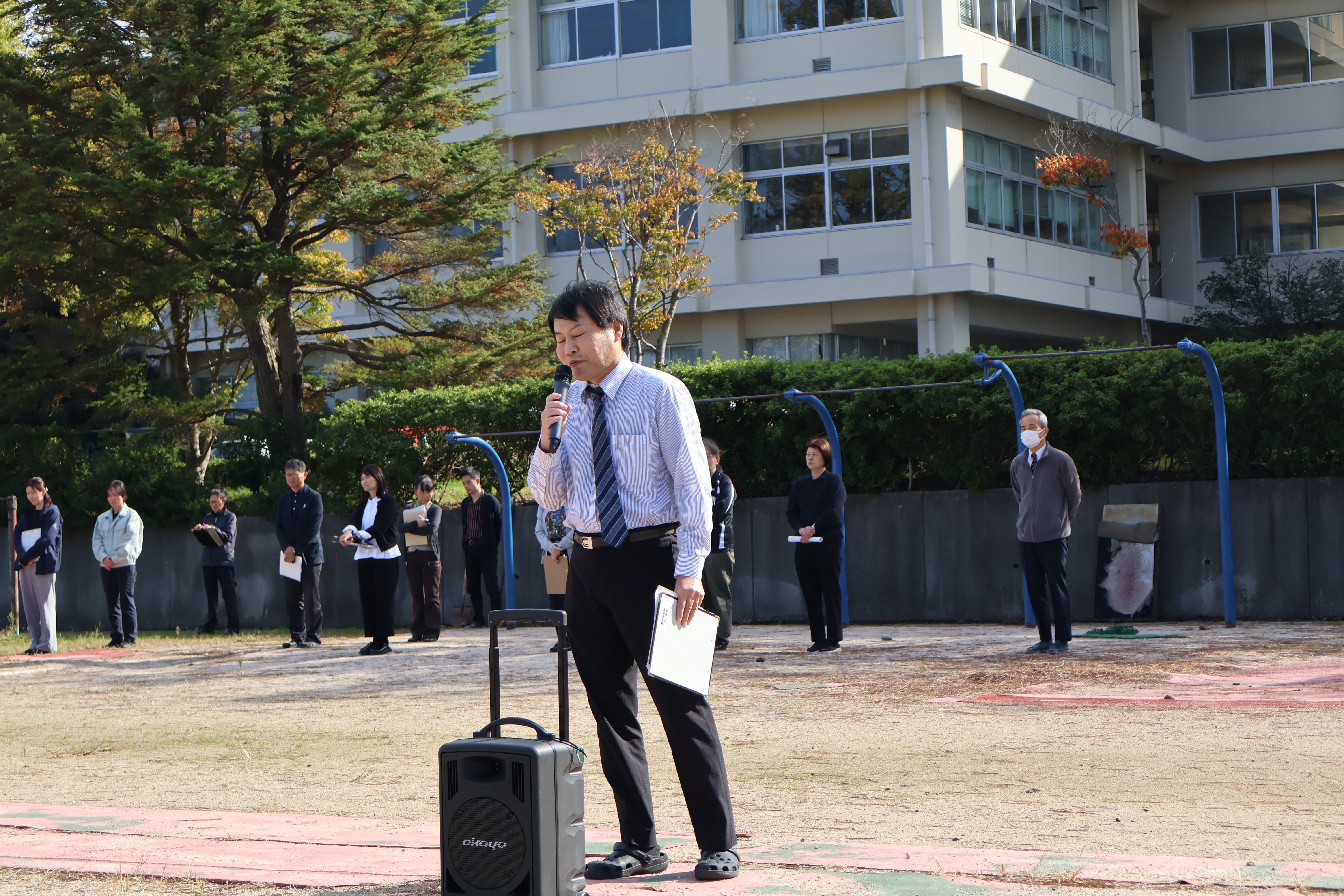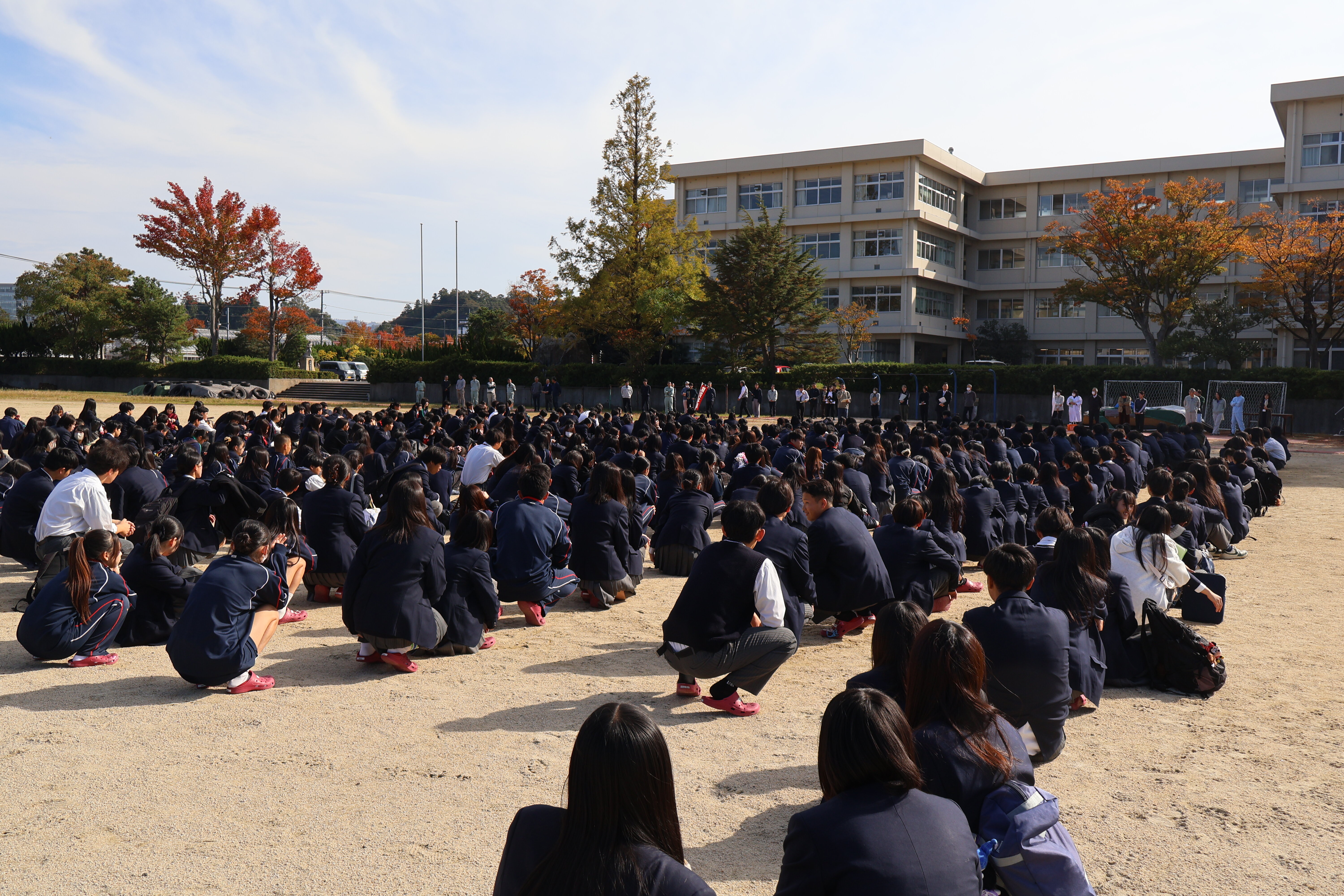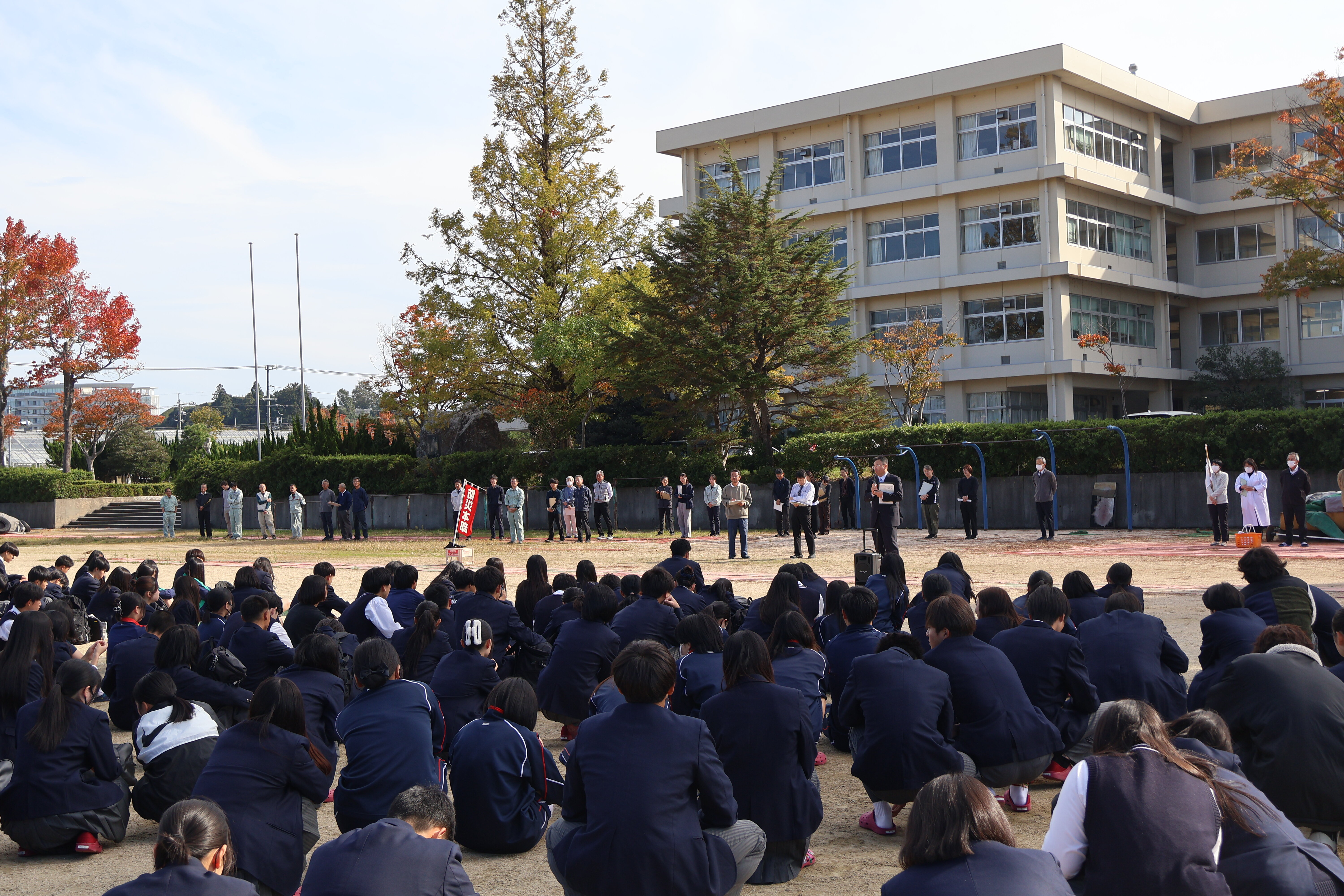 地震を想定した防災避難訓練を行いました。校長先生の話の後、理科の先生から、自分にとって都合の悪い情報を無視したり、過小評価する「正常性バイアス」がはたらくことがあるけど、もしものとき、逃げるときには逃げて被害を最小限にしましょう、というメッセージをいただきました。