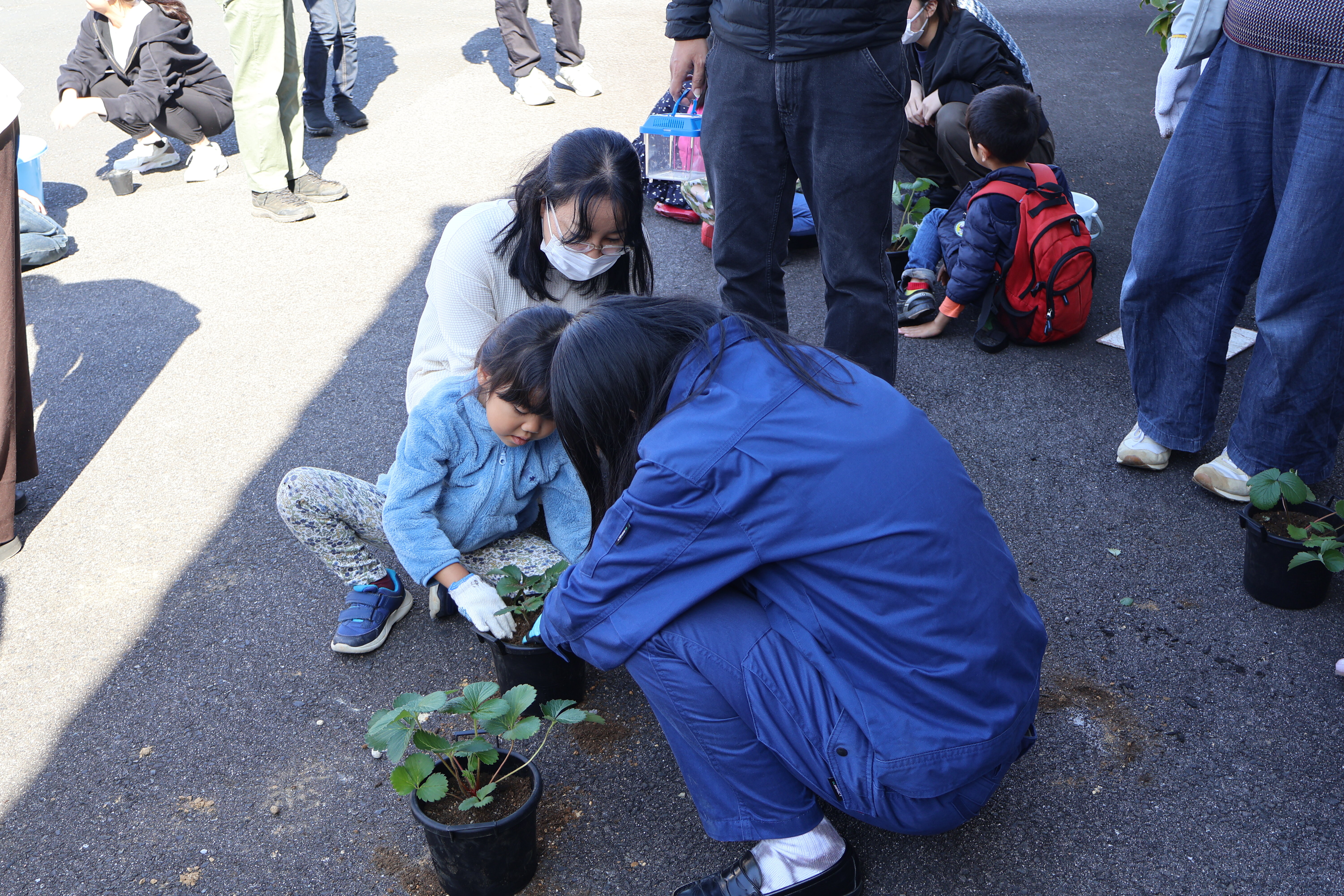 イチゴをポットに植える