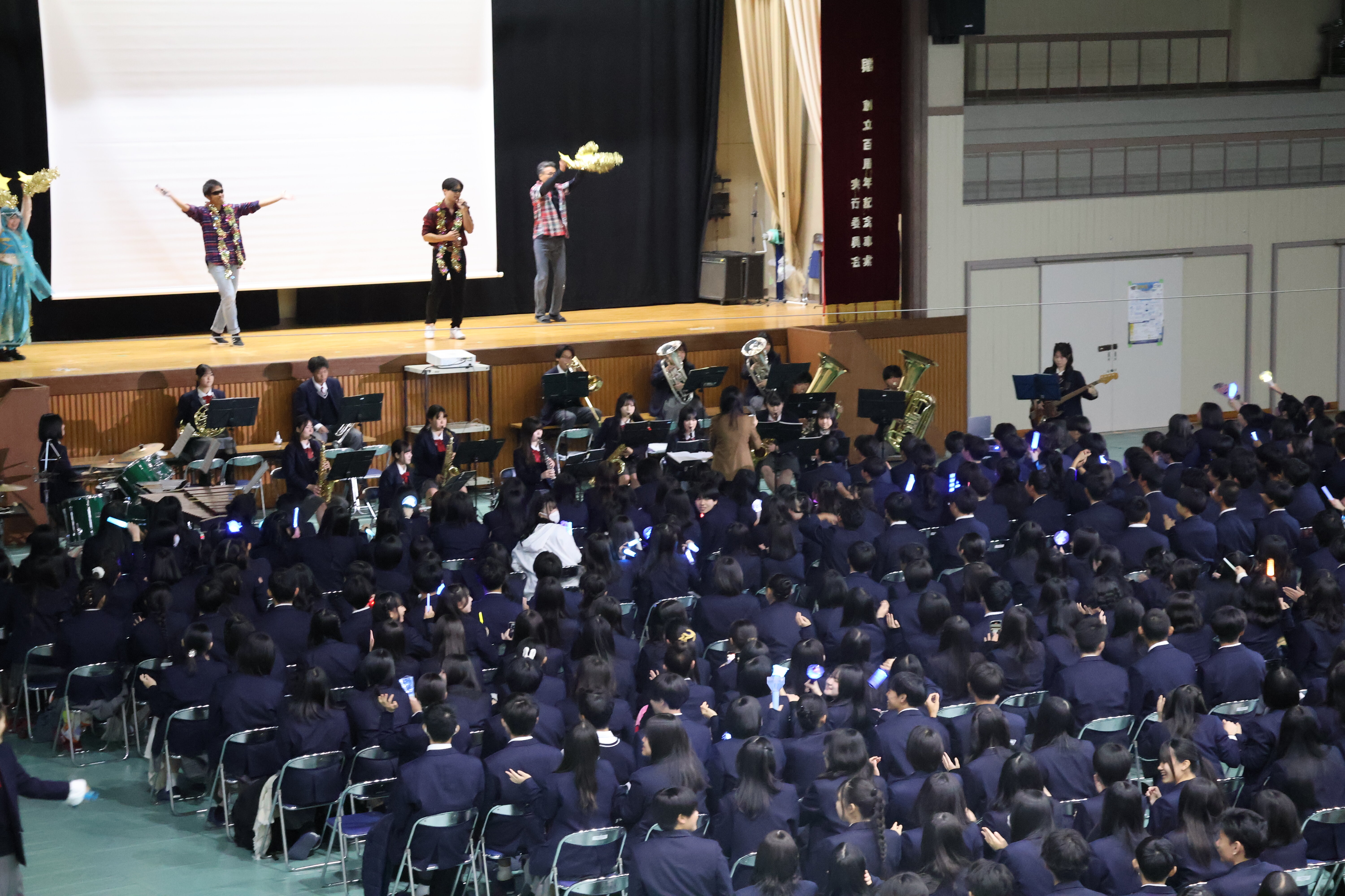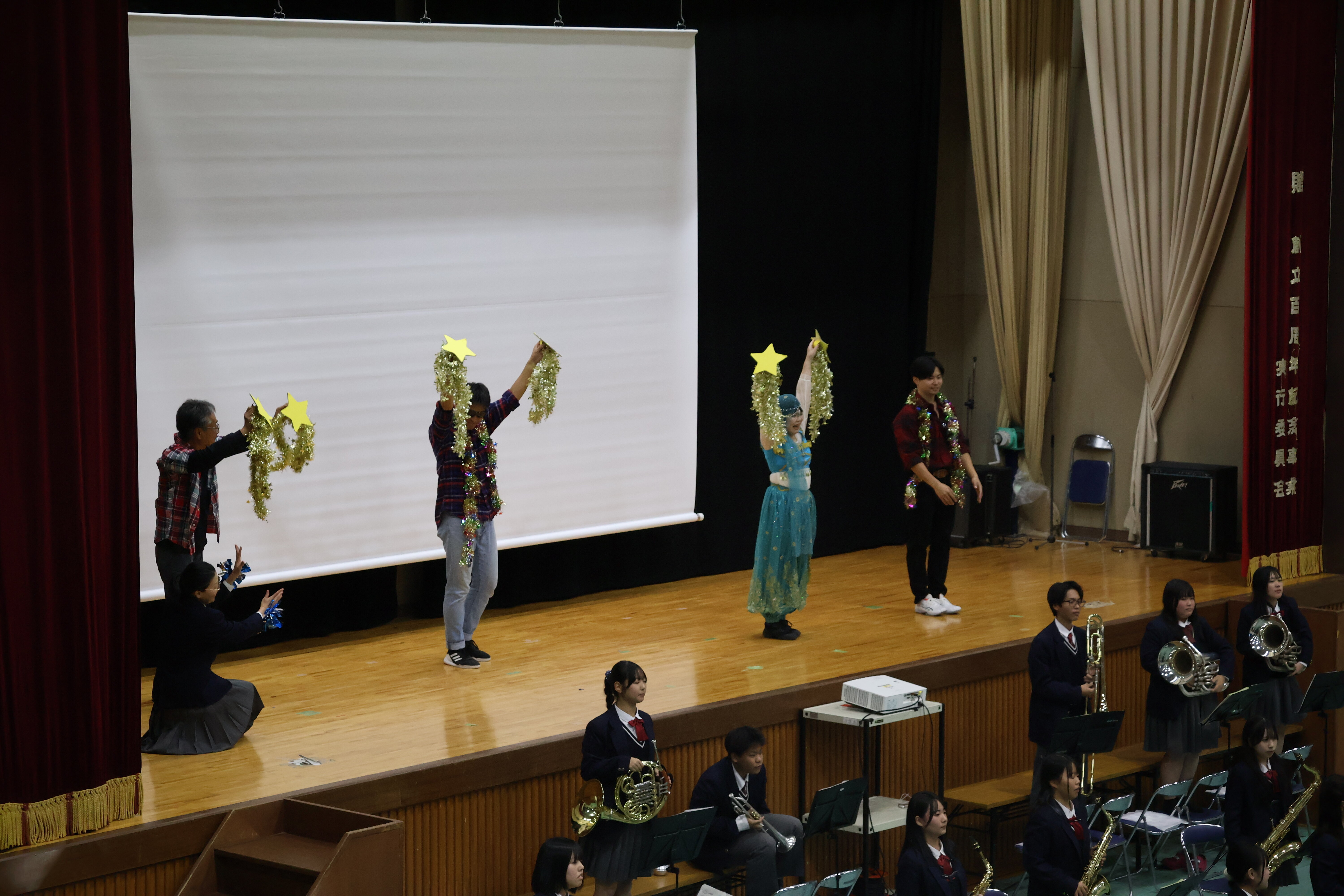 イベント カテゴリ: 【クラウドファンディング】 いじめ防止基本方針 お知らせ イベント グランドデザイン 中学生の皆様へ 収穫祭 各種支援金・大阪学生会館 各種証明書、他 図書館 学校経営方針 授業風景 特別支援教育 行事予定 進路指導部 部活動 2025. 12.01 収穫祭 <吹奏楽部演奏> 収穫祭一日目の吹奏楽部演奏では、先生方の熱演もあり、全校が盛り上がりました。 前に戻る