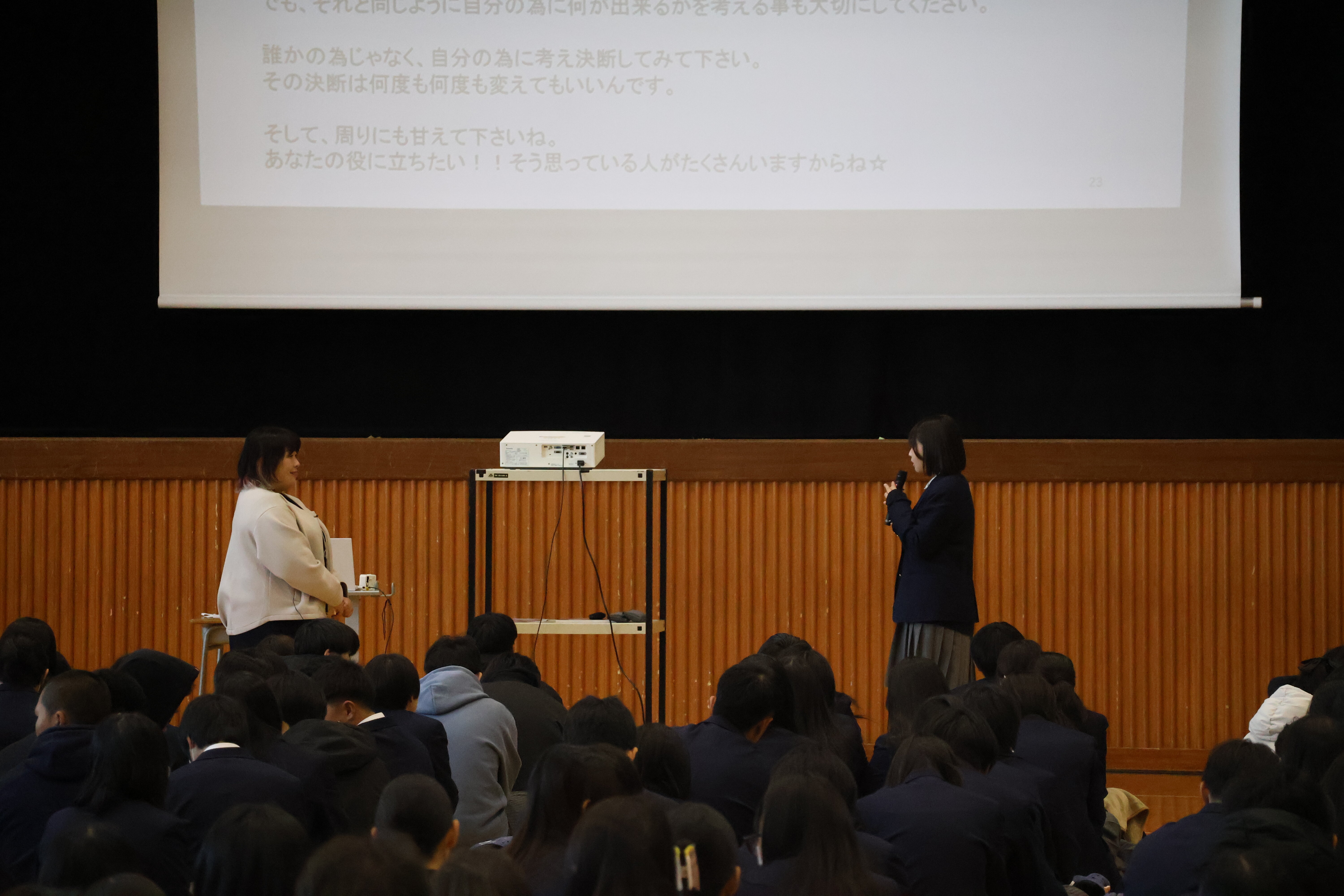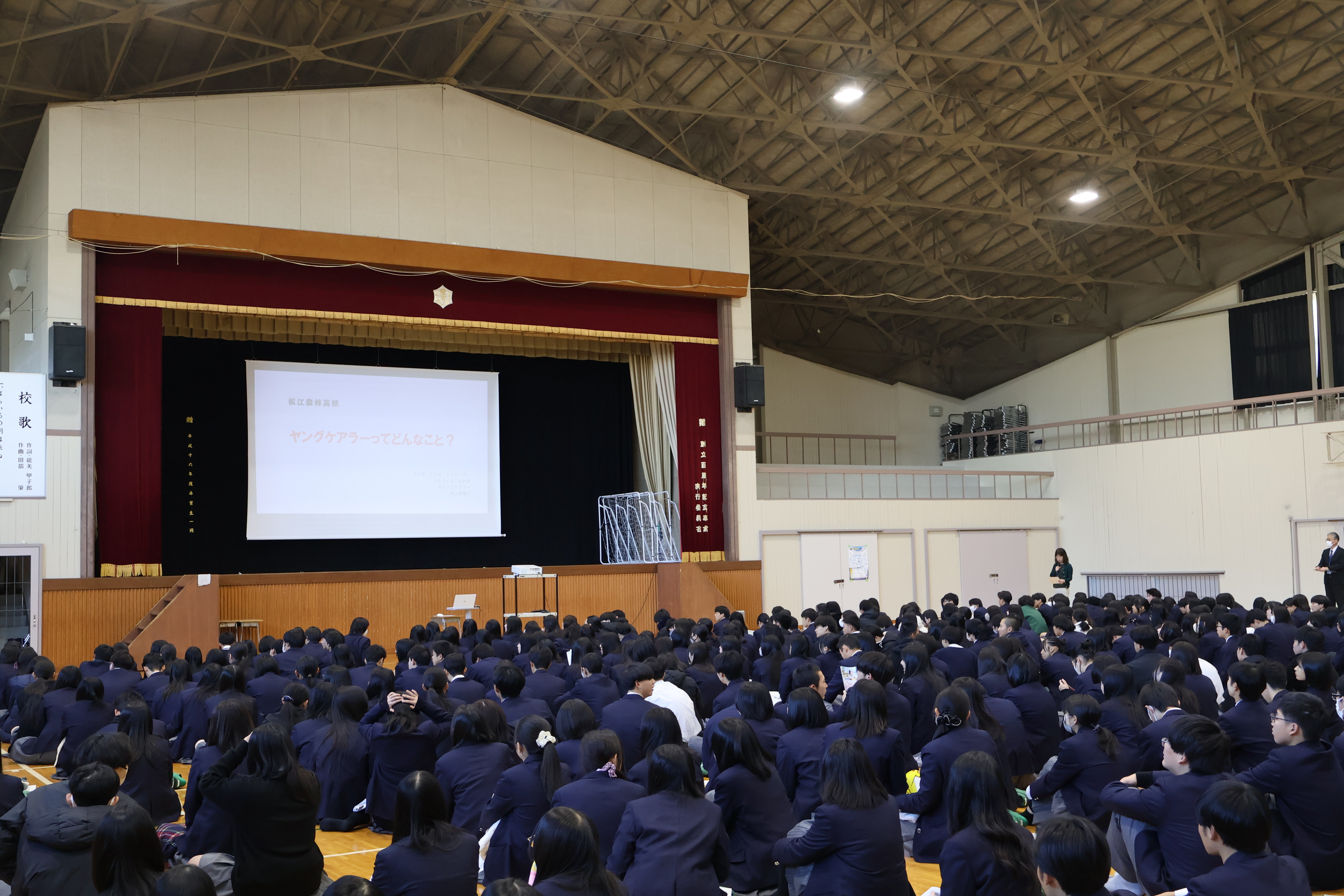 ヤングケアラーってどんなこと?と題してコネクトほーむ代表 井上恵理子氏に講演をしていただきました。ヤングケアラーについて考える機会になりました。「高校時代は大人になるための土台になる大切な時間です。自分が取り組むすべてと心のバランスが取れていることが重要。取れていないときには誰かに相談しましょう。」という言葉にみんな納得していました。井上様、ありがとうございました。