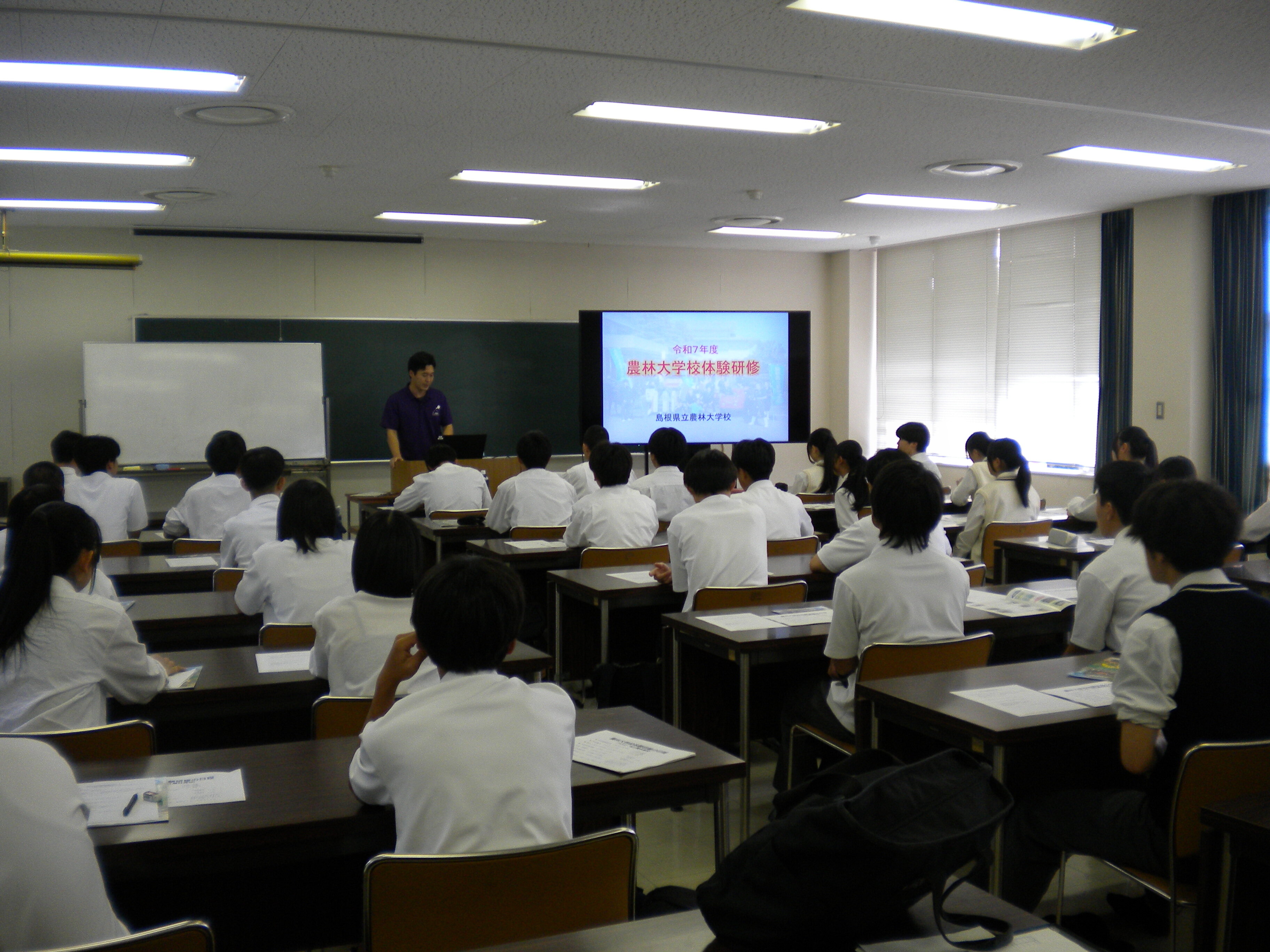 生物生産科です。1年生は農林大学校で研修を行わせていただきました。学校概要の説明、農林大学校1年生の方との交流、学校案内、専攻に分かれての体験研修をさせていただきました。肉用牛での見学、実習は松江農林高校では学ぶことができないことで大変に勉強になりました。農林大学校の皆様、貴重な一日をありがとうございました。このほか、農林大学校様には、環境土木科、総合学科地域系列が林業で研修させていただいています。