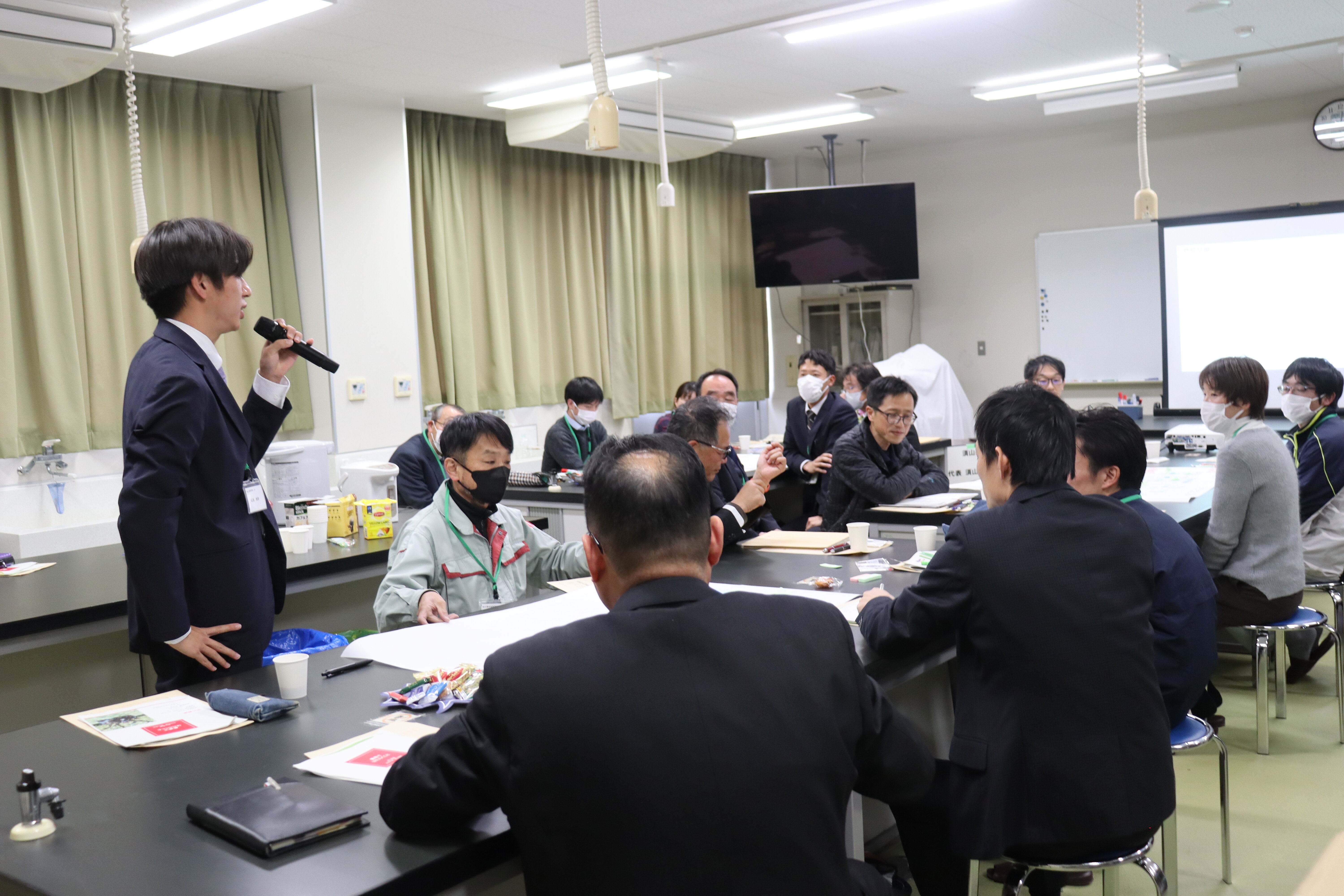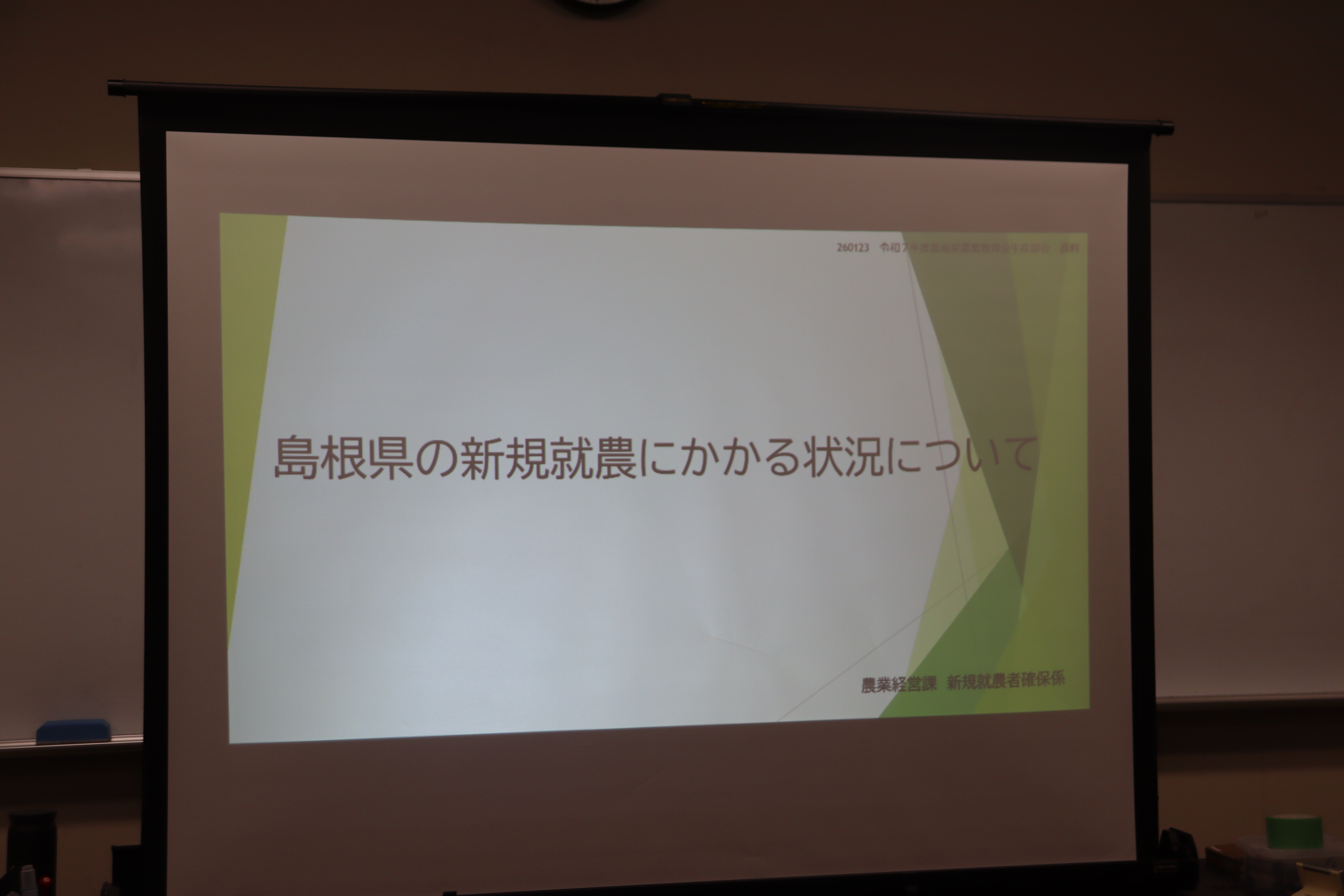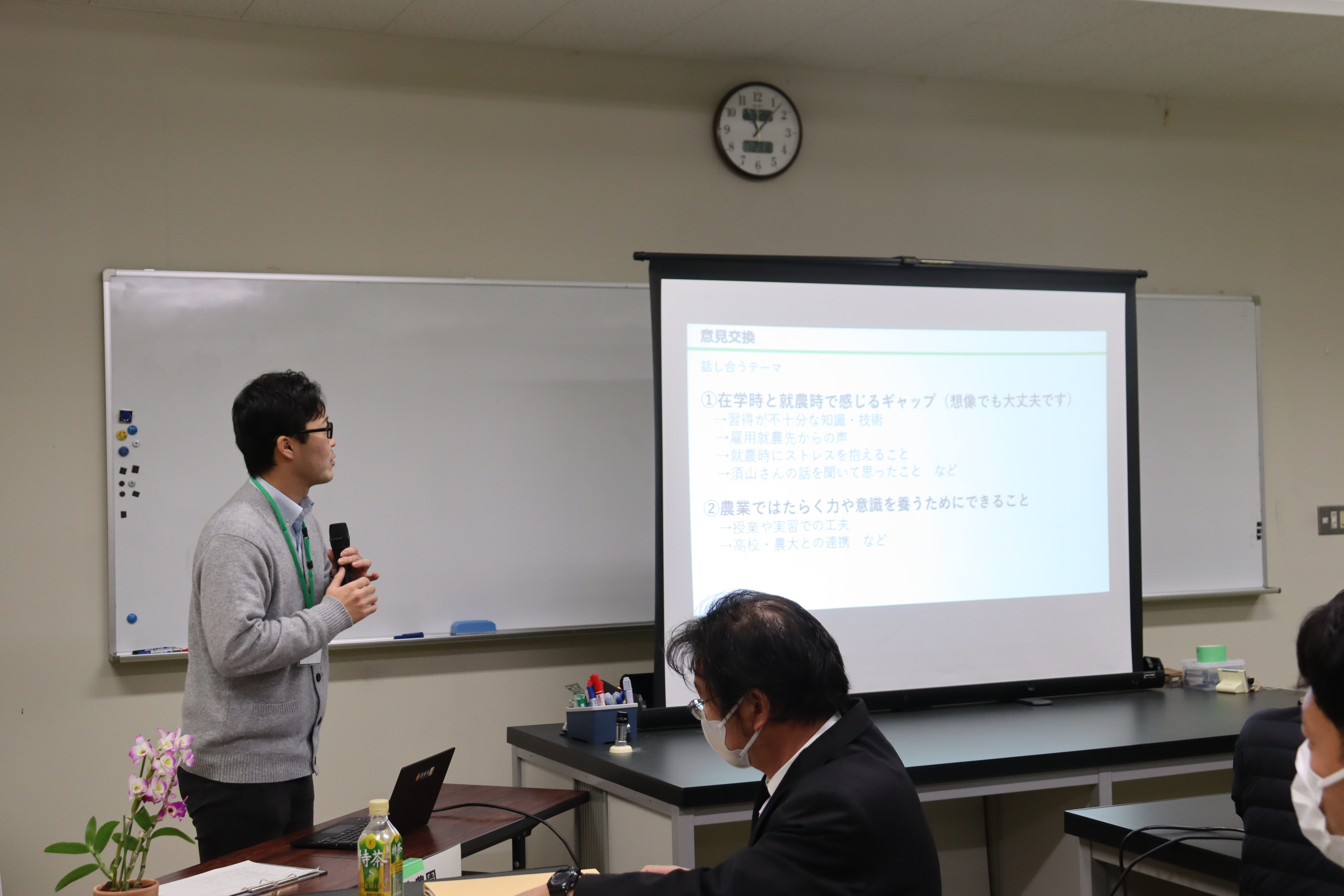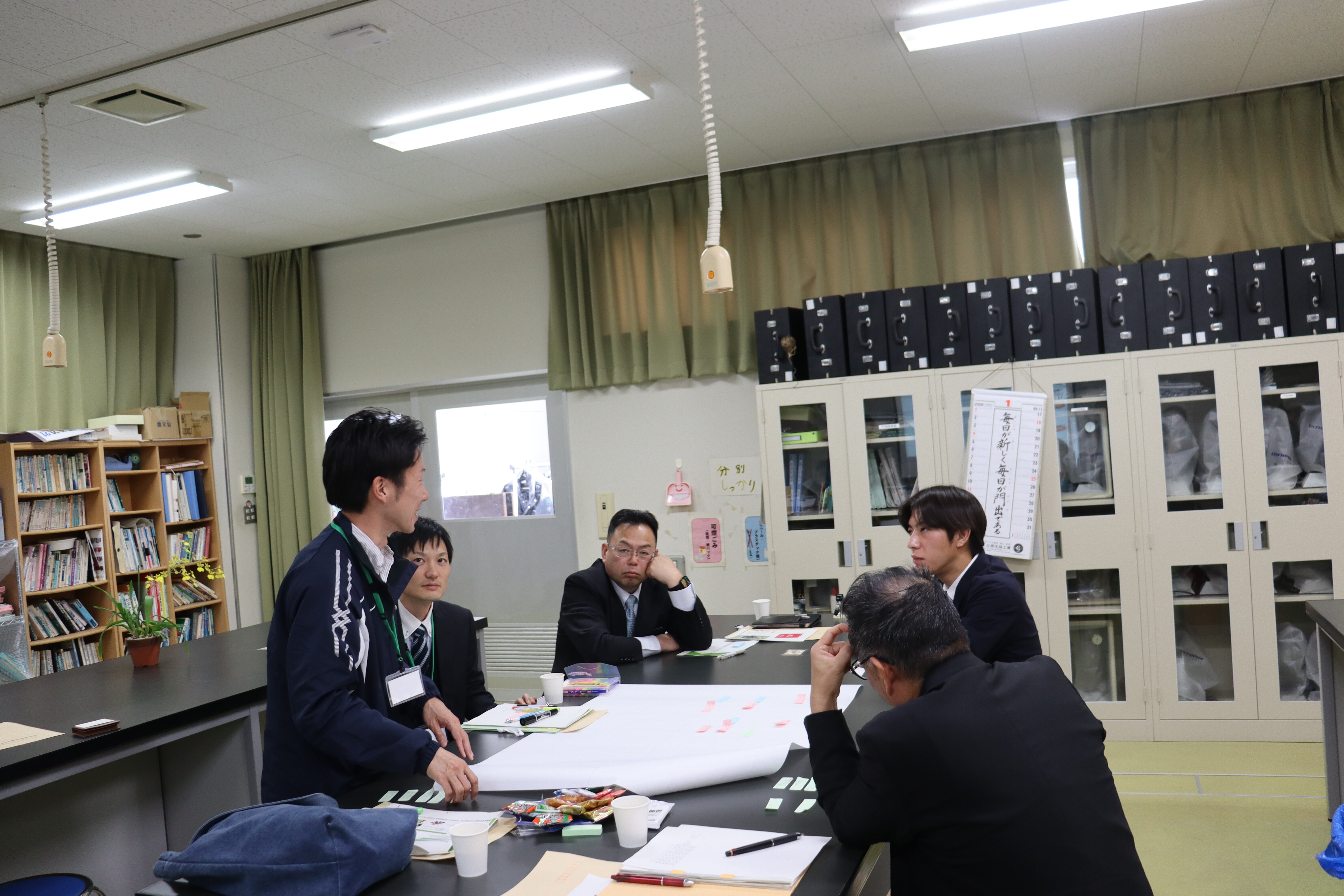 島根県の農業高校の先生方と島根県職員で農業の就農を担当しておられる職員の皆さん、農林大学校の先生方、農業者の方を交えて研修会を行いました。県庁農業経営課から新規就農の状況についての話、松江市の農業者の方からの話の後、農林大学校の先生が司会をし、①高校在学時と就農時で感じるギャップ、②農業で働く力や意識を養うためにできることをグループに分かれて話し合いました。グループでは、意見を考える、発表、模造紙に付せんを貼ってまとめる、全体発表し、模造紙をボードに貼って意見を共有するという時間でした。島根の農業後継者について農業関係の県職員と農業教員がともに考える貴重な時間でした。