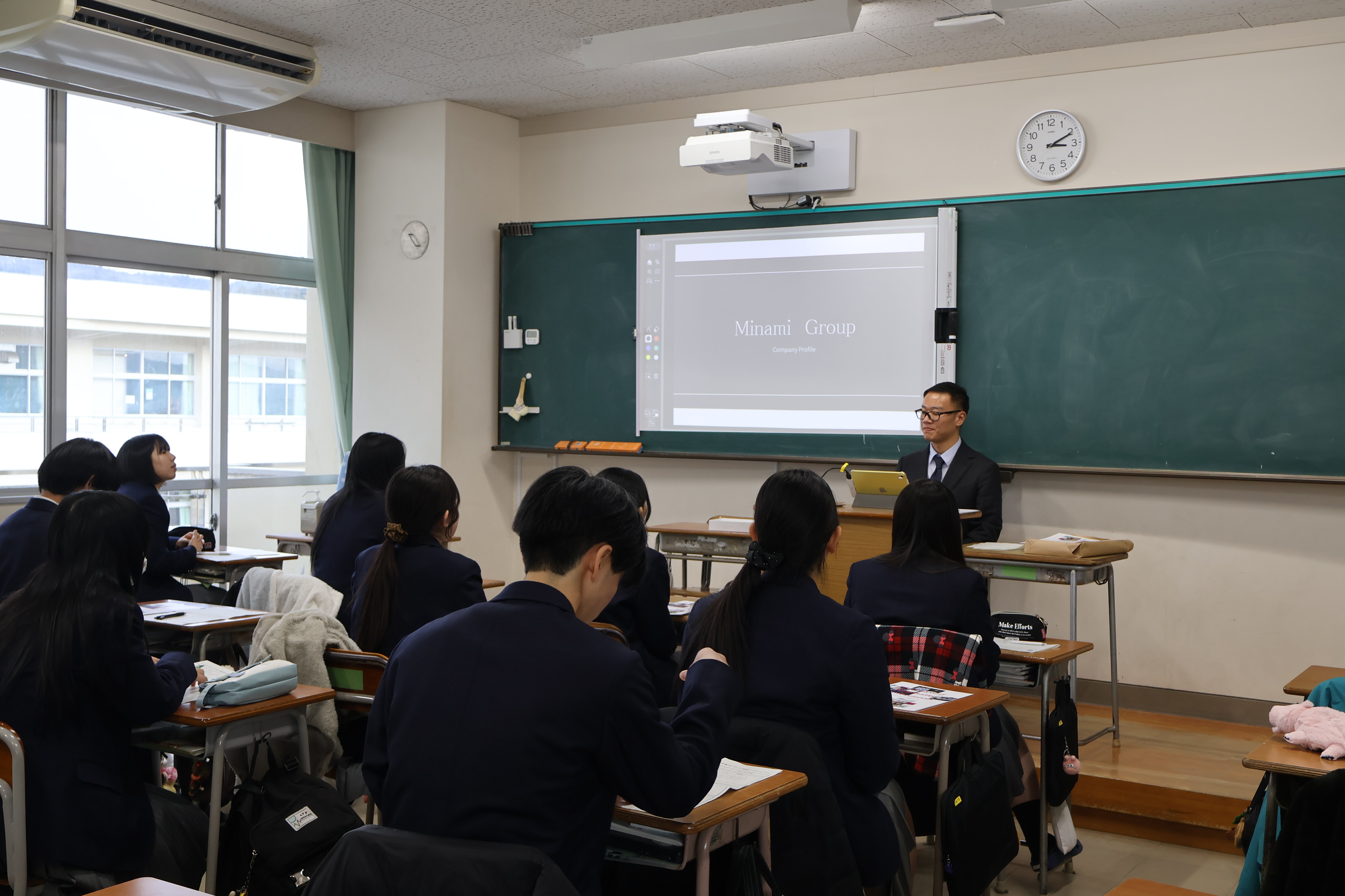 企業ガイダンスを行いました。地元企業の37社の皆様にご来校いただき、1、2年生が各ブースに分かれて企業の話を聞きました。地元企業への理解を深めるとともに、魅力ある活躍の場が、私たちの暮らしている地域にあることを知るよい機会になりました。また、企業活動を通して地域貢献を果たすことの重要性を実感しました。37社の皆様、ありがとうございました。