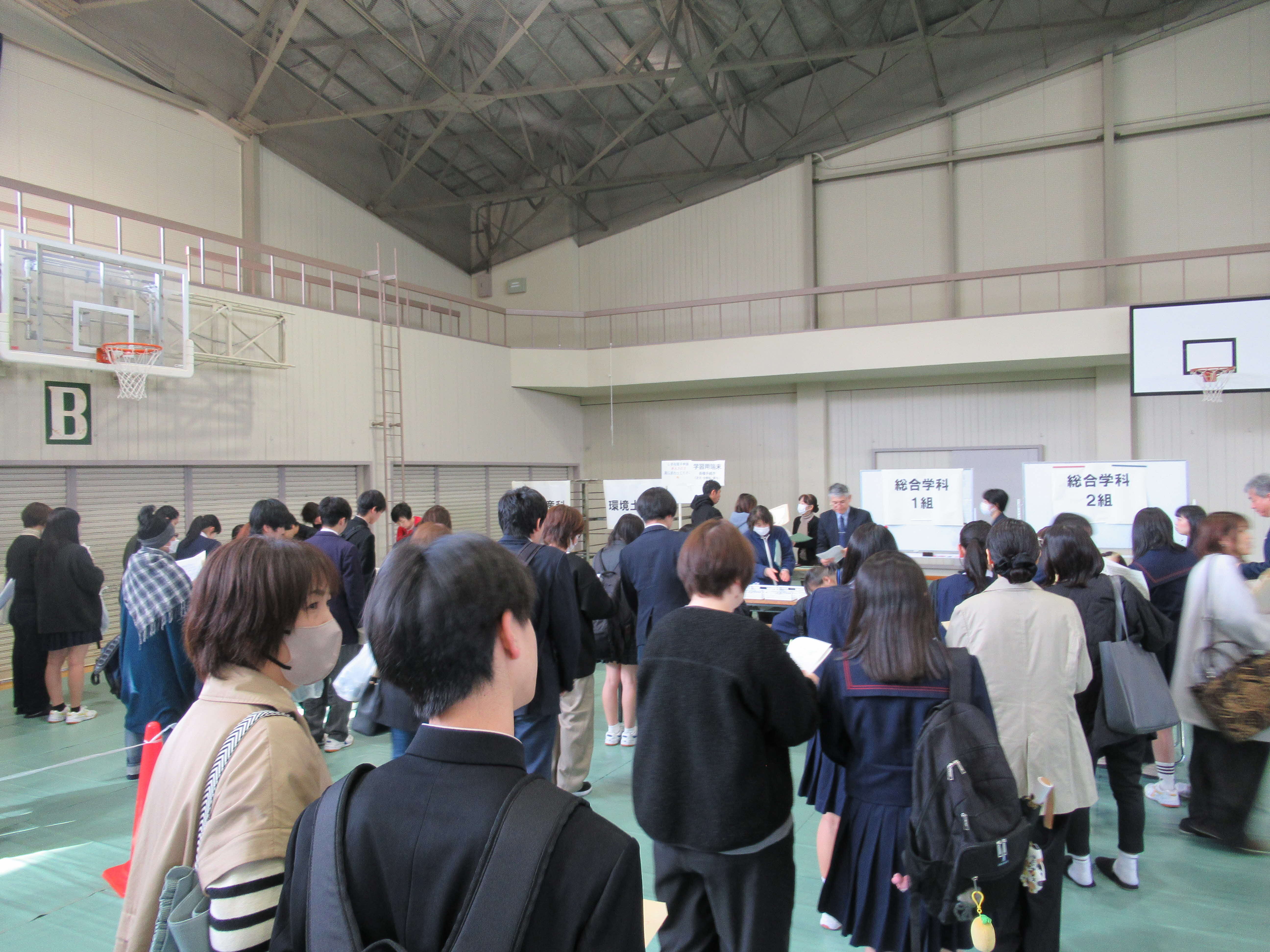 入学予定者説明会を行いました。合格した中学生と保護者が松江農林高校に登校し、高校での生活について聞いたり、教科書や実習服など高校生活で必要なものを購入し、4月からの松江農林高校での生活に胸を膨らませました。